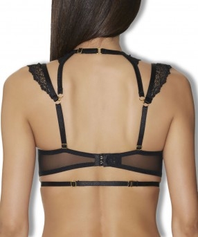 Aubade 'Male Sangle' Moulded Push-up bra has a bondage style and is a padded push-up bra, It has sexy embroidered tulle straps, with the seductive removable collar around the neck, finished off with a gold satin band around the neckline to enhance the cleavage.